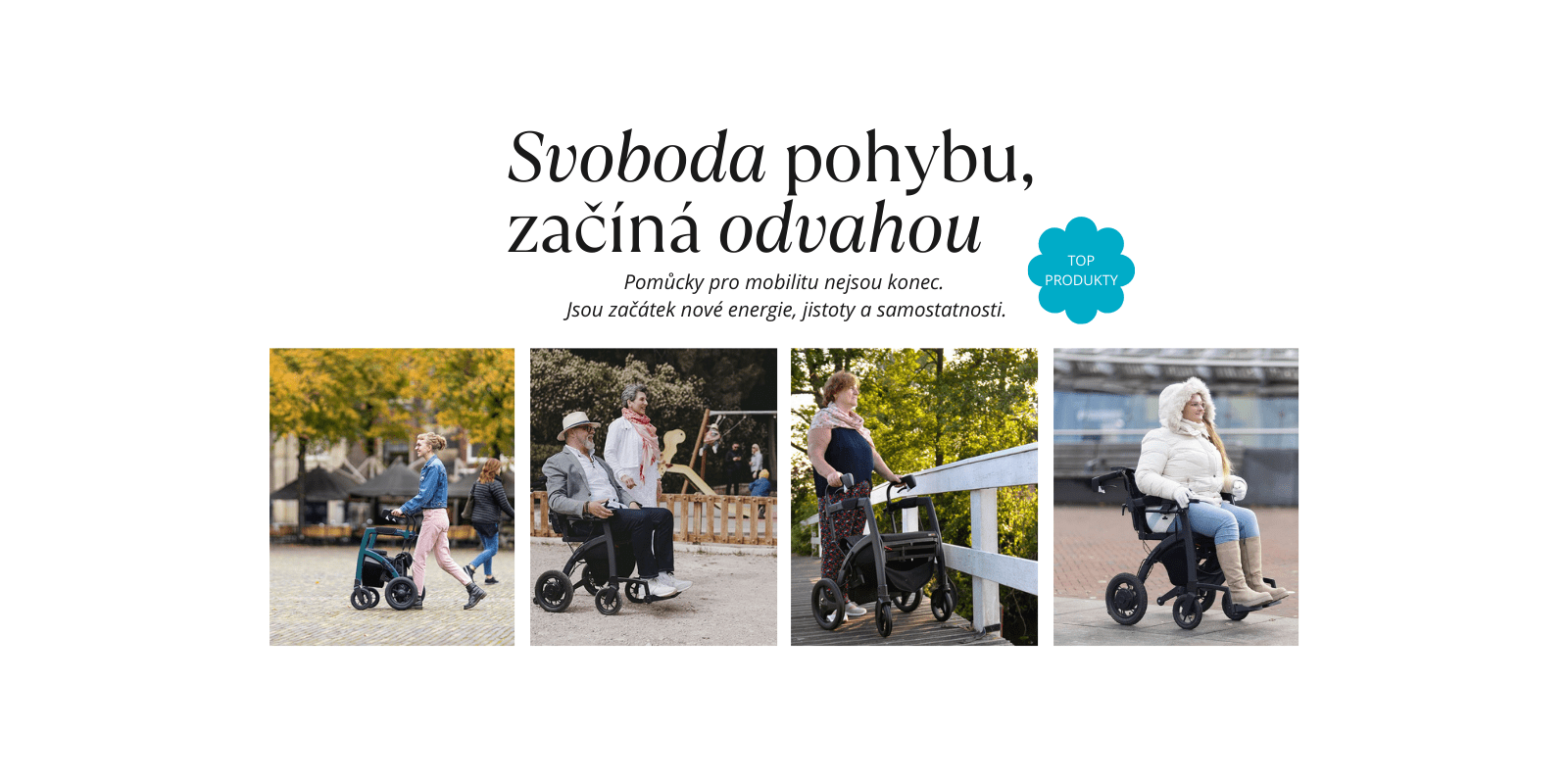 Každý produkt pečlivě vybíráme tak, aby vám usnadnil každý krok a vrátil pocit svobody – doma i venku.